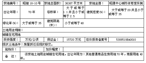 1.該宗國有建設用地使用權由昭陽區(qū)土地儲備交易中心委托昭通華龍拍賣有限公司拍賣。