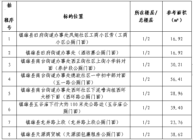 受鎮(zhèn)雄縣物業(yè)管理中心委托:公開拍租鎮(zhèn)雄縣主城區(qū)內(nèi)8個公廁門面3年期經(jīng)營權(quán)。相關(guān)事項如下: